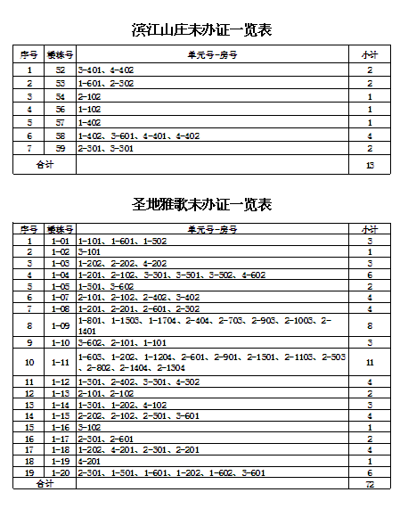 由原益安公司和市建投公司負(fù)責(zé)拆遷和安置的安置戶,安置房辦證工作開展已經(jīng)近三年了。截止目前,還有少部分樓棟號(hào)的安置戶(具體樓棟號(hào)詳見附表)至今未來辦理辦證手續(xù)。請(qǐng)你們于12月31日前,來我公司辦理相關(guān)的辦證手續(xù)。若因安置戶自身原因拖延未辦理各項(xiàng)辦證手續(xù)的,今后由此產(chǎn)生的辦證不便和麻煩,由各安置戶自行承擔(dān)。如有疑問或不清楚的請(qǐng)咨詢我公司,咨詢電話:5992137,5992136。